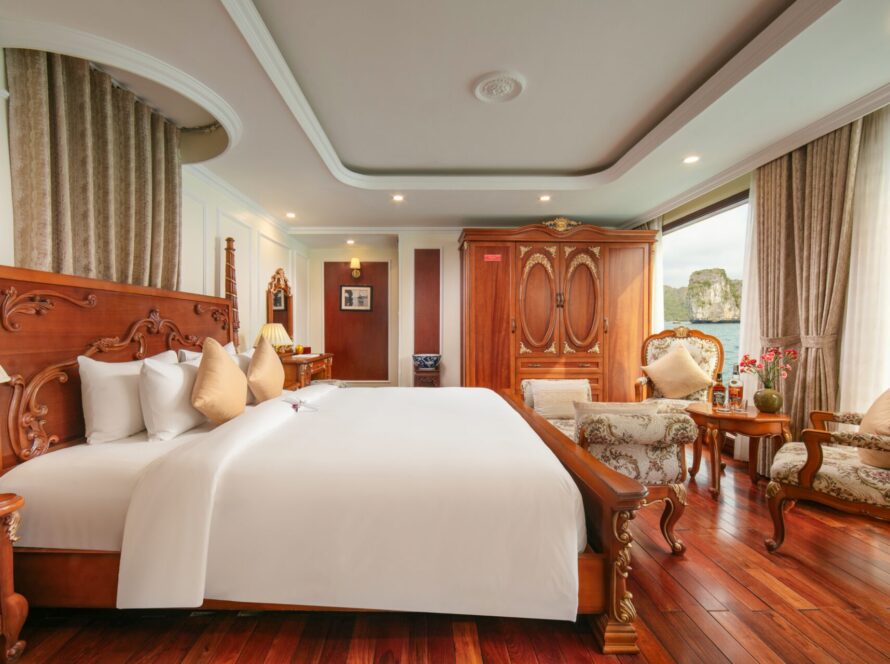 Emperor Cruises Legacy Halong sont des croisières entièrement équipées de 8 cabines mesurant de 35 à 70 mètres carrés, suffisamment grandes pour pouvoir ajouter un lit supplémentaire.